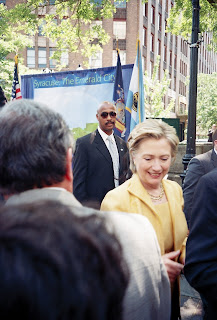 As soon as NY Junior Senator began to speak, most in the crowd listened alertly. Some encircling the crowd shook their heads in agreement; a few did so mere half-seconds before the point being made was spoken, more just after each item mentioned. The rest of the crowd seemed somewhat attentive. "I'm very disturbed by the lack of leadership coming out of the White House and the difficulties we have in the Senate passing something over the Republican opposition because of our rules," Clinton said.